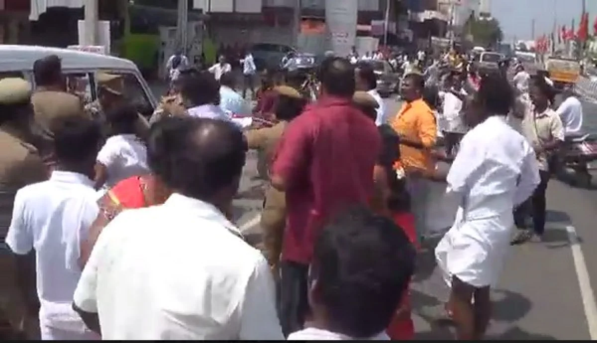 காவல்துறையினர் விடுதலை சிறுத்தைகள் கட்சியினரை ஜீப்பில் ஏற்ற, அப்போதும் விடாமல் பாஜகவினர் தாக்கினர். பின்னர் பாஜகவினர் திருமாவளவனுக்கு எதிராக கோஷங்கள் எழுப்பி சாலை மறியலில் ஈடுபட்டனர்.